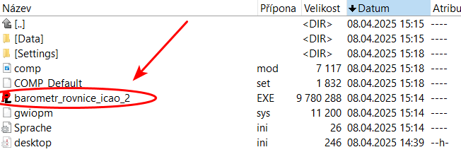 Nebo si pro výpočet tlaku na hladině moře stáhněte jednoduchý prográmek pro Windows. Je třeba rozbalit archiv zip a spustit soubor exe:
