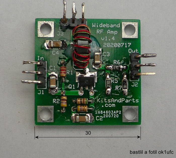 1. Zesilovč 2SC5551A byl navržen s jednoduším obvodem stabilizace pracovního bodu. Mezi výstupem zesilovače a bází je pouze rezistor R1, nikoliv kmitočtově závislá vazba.