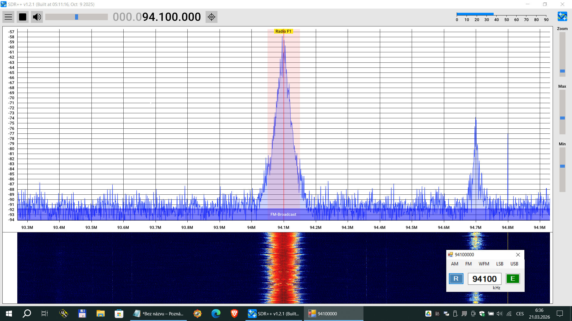Poznámka k módům: SDR++ podporuje standardní řetězce jako USB, LSB, AM, WFM, FM, ...
