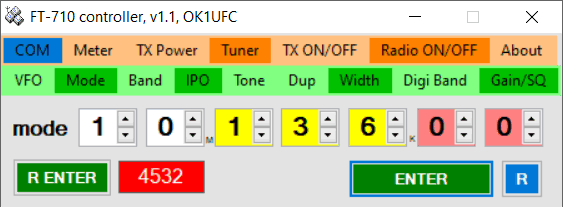 3. Popsaný kontrolér tedy čte informace o kmitočtu a módu ze serveru SDR++ a podle těchto informací synchronizuje přesně a okamžitě TCVR Yaesu FT-710 na můj pokyn. Z kontroléru však lze nastavovat mnohem víc parametrů rádia Yaesu. Parametry a hodnoty se volí kliknutím na položky dvou řad menu. Lze řídit nastavení měřidla (S-metr, Power, ALC...), výkon TX, interní tuner, PTT, lze zapnout/vypnout TRX, lze pracovat s VFO, módem, s pásmy, s IPO/ATT, s šířkou pásma filtru a s dalšími parametry.
