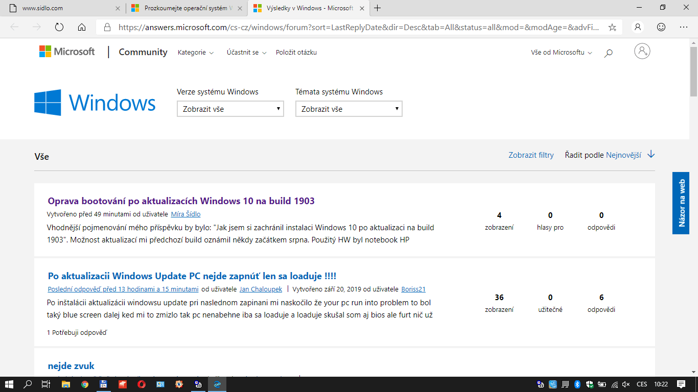 ukázka. Zrovna jsem psal do komunitního fóra příspěvek, jak