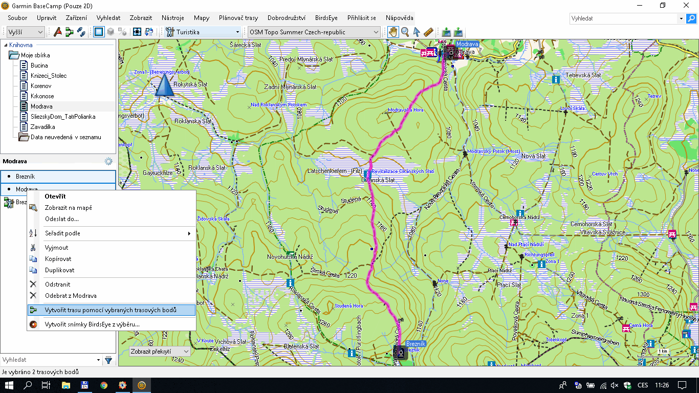 vybraných) vygenerovat cyklotrasu nebo turistickou trasu.
