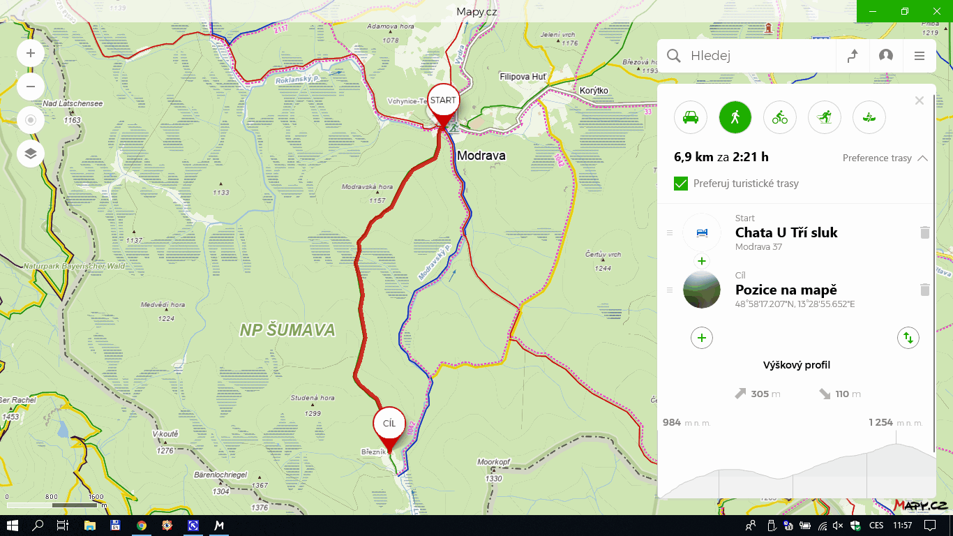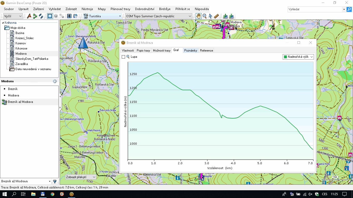 Trasu snadno zobrazíte, včetně výškového profilu: