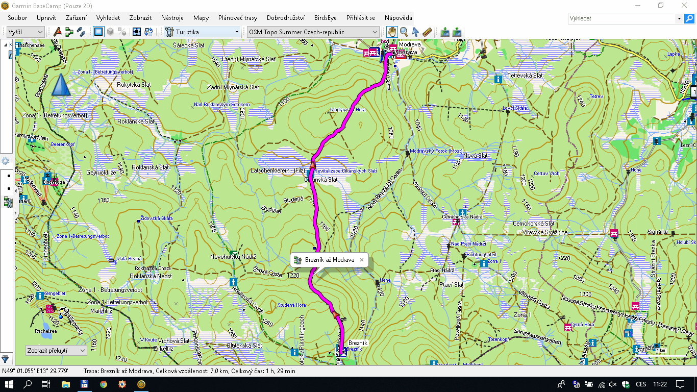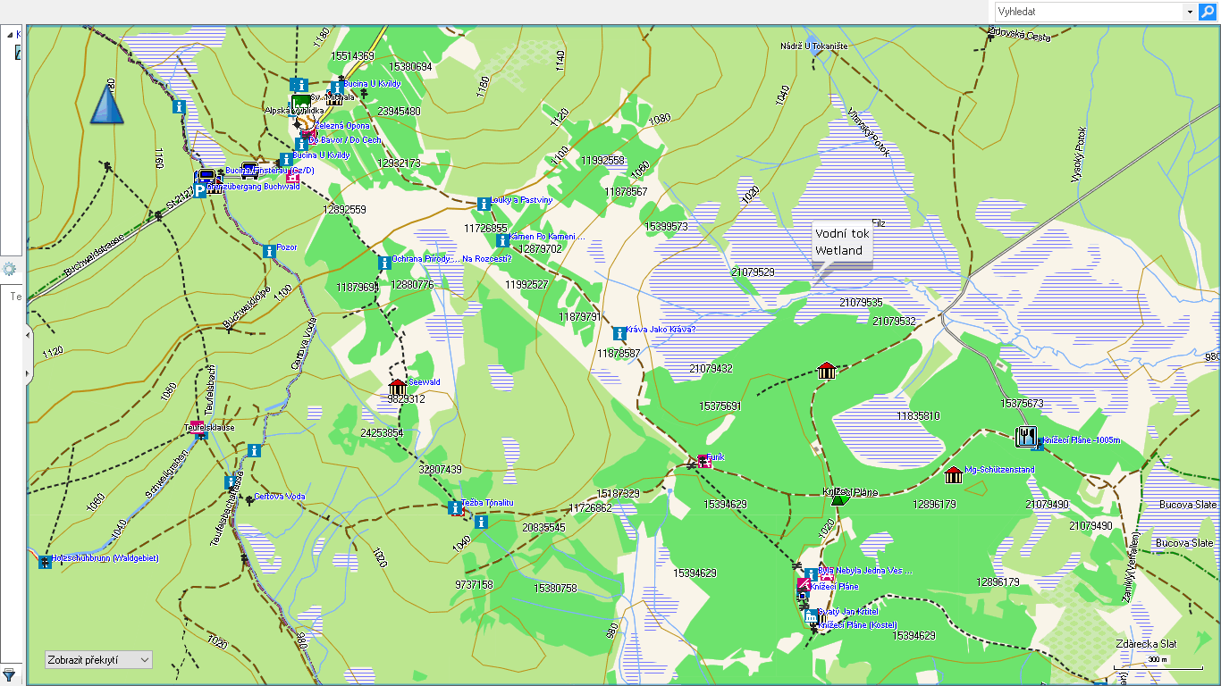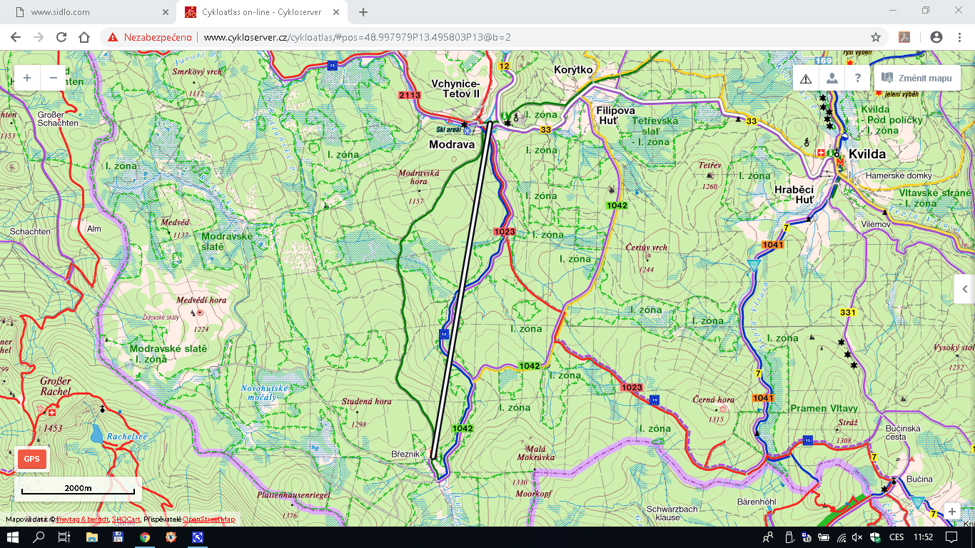 vidíte (vlevo dole) selektované body Březník a Modrava.