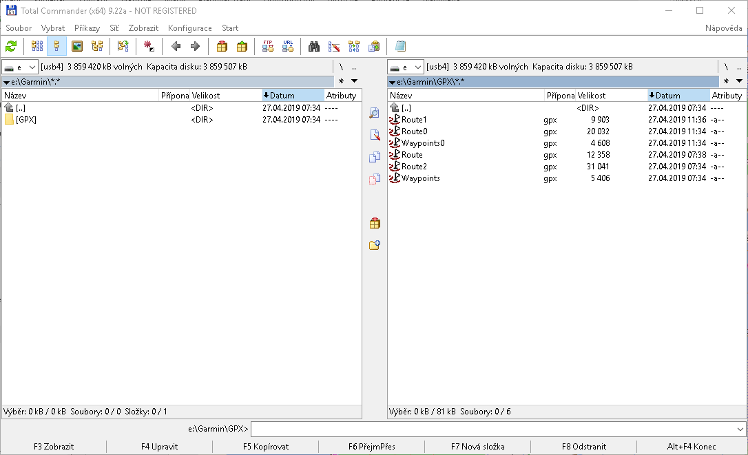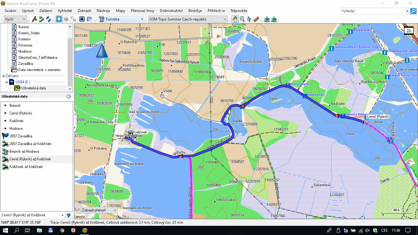Ukládání do GPS Garmin je z BaseCamp jednoduché.
