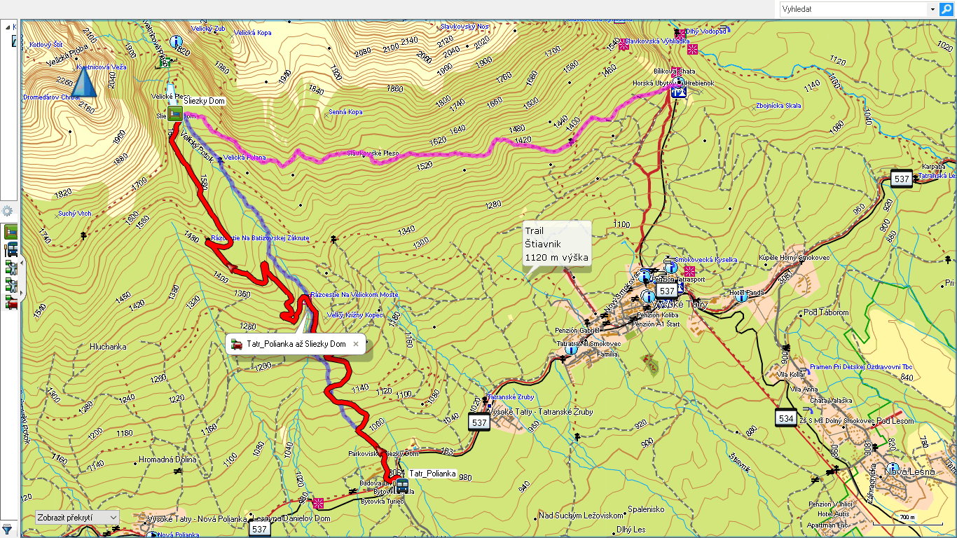 3. Mapa musí spolehlivě importovat body a trasy z GPS