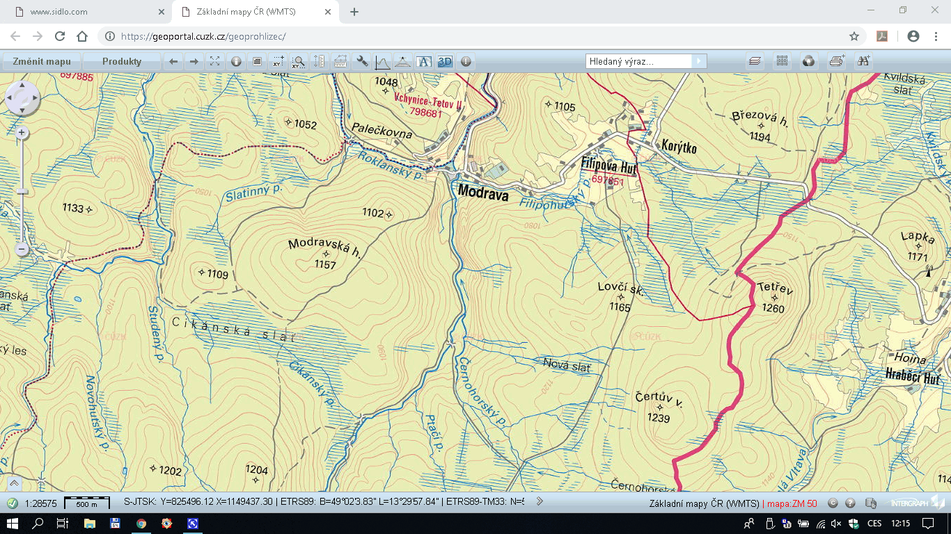 geoportal.cuzk.cz hezké topografické on-line mapy.