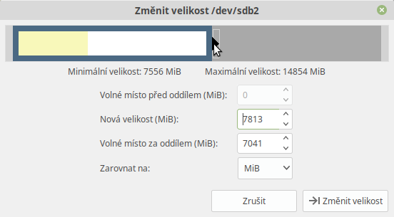 Takový případ jsem zrovna řešil. Na HDD jsem měl obraz SD karty o velikosti asi 3.2 G (po kompresi). Obnovoval jsem ho na SD kartu s kapacitou 16 G. Program obnoví samozřejmě jen do velikosti karty původní, v mém případě 8 G. To se mi nelíbilo, ale co s tím? Oblíbený EaseUS Partition master neumí dělat s formátem ext4. Jiný program se mi však do Windows nechtělo instalovat. Nakonec jsem partition roztáhnul v Linuxu pomocí hezkého GParted: