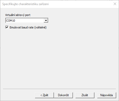 Ukázka emulace sériové linky mezi emulovaným COM10 a fyzickým