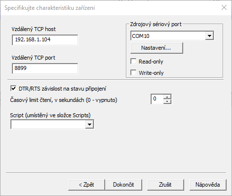 1. V ukázce jsem použil jeden port COM10 a jeden TCP/IP klient