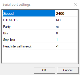 Nastavení parametrů sériového rozhraní (baudová rychlost, počet
