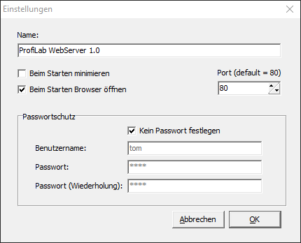 Mimo názvu serveru lze nastavit port serveru (default je 80) a