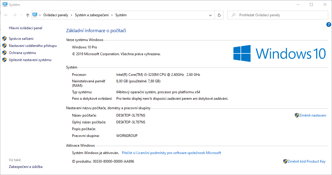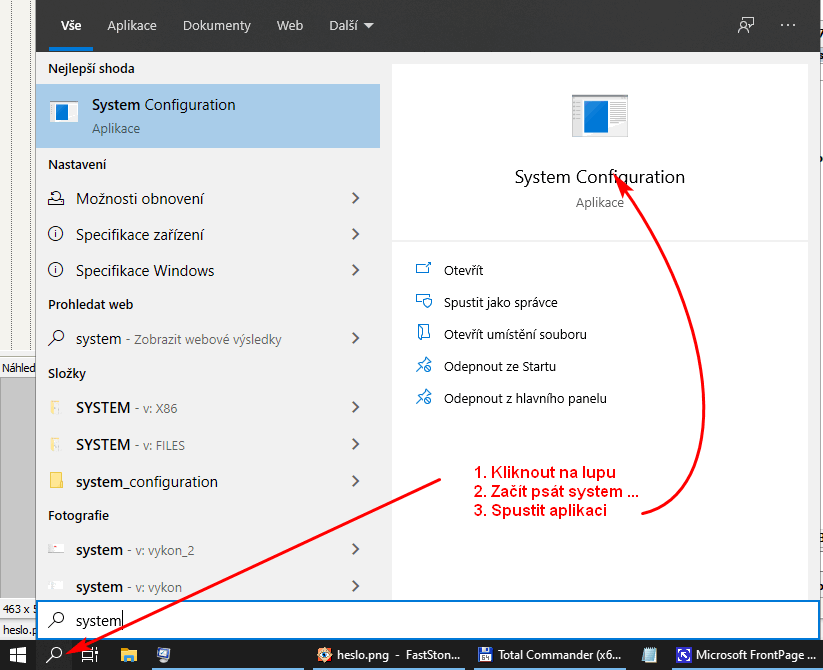 Je užitečná aplikace. Vyhledáme ji například tak, že klikneme na lupu, začneme psát System ..., až se ukáže aplikace v menu - viz obrázek vpravo. Uložíme si spouštěč např. do nabídky Start.