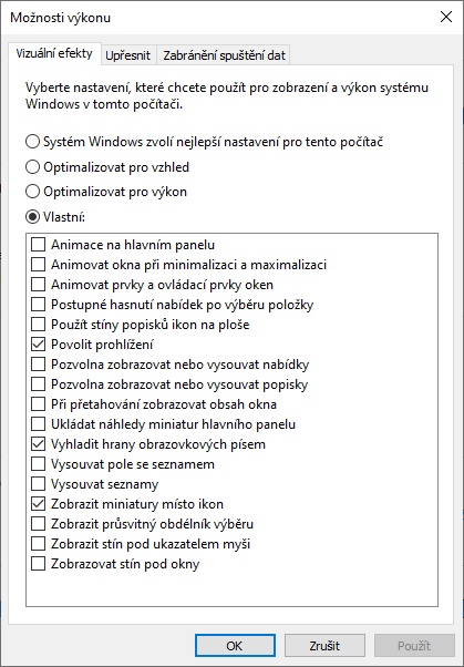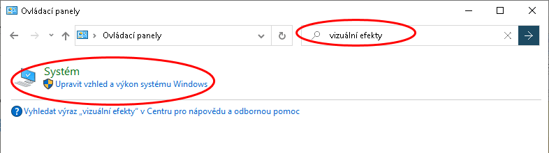 Ovládací panely - Systém a zabezpečení - Upřesnit nastavení systému - Vlastnosti systému - Vizuální efekty - Nastavení ...