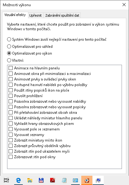 5. Zrychlení běhu aplikací u pomalého HW lze dosáhnout vypnutím vizuálních efektů. Dělá se to stejně, jako u Win XP. Postupně takto: