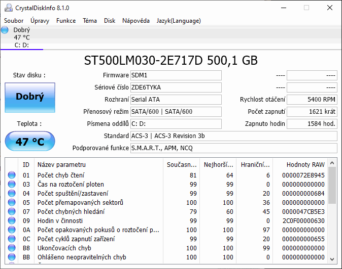HDD, disk je poměrně nový, defragmentovaný nástrojem Windows.