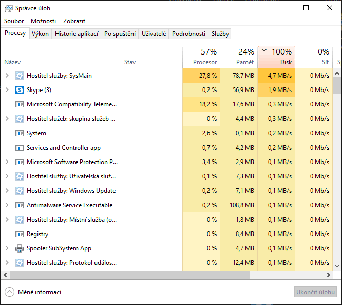 špehování?). Se SysMain se postará rovněž o 97% vytížení přístupu