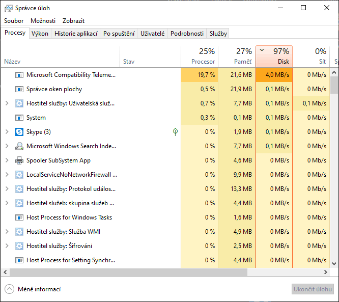 2. Přístup na disk je vytížen i po několika minutách po spuštění