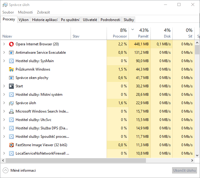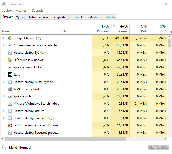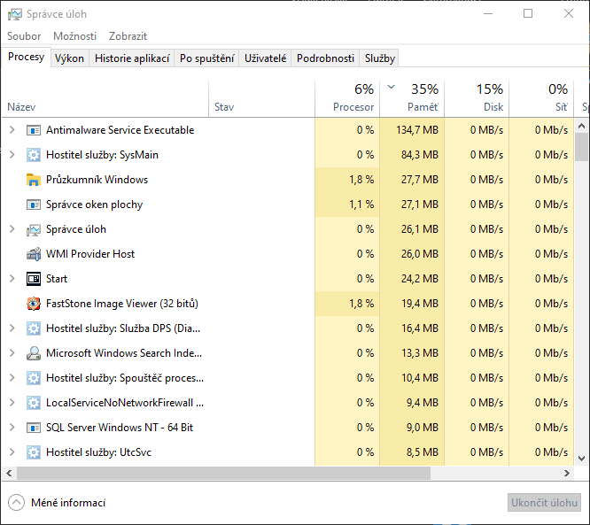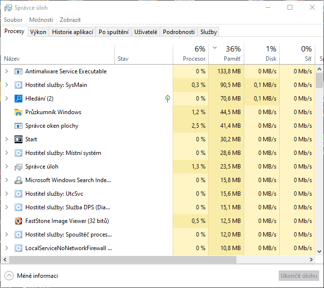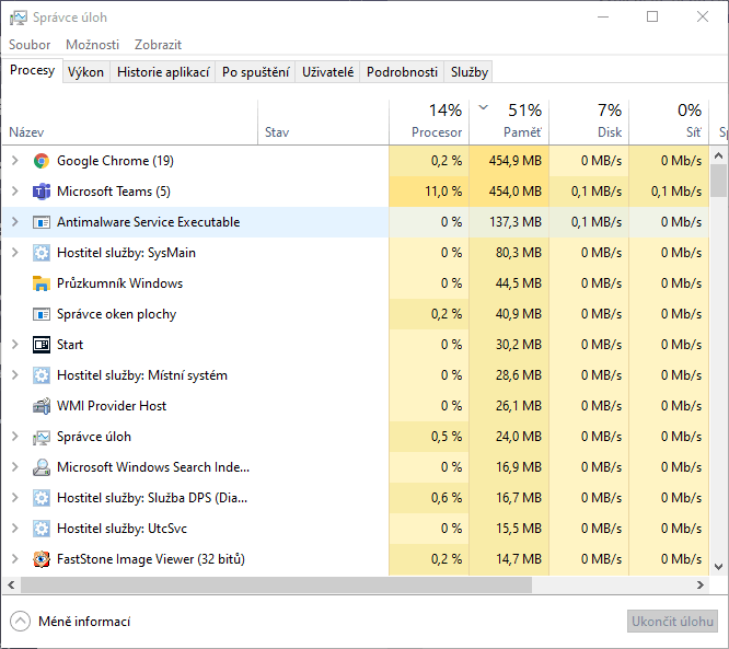 procesor, ale vypnul jsem i službu Antimalware Services. To však nejde