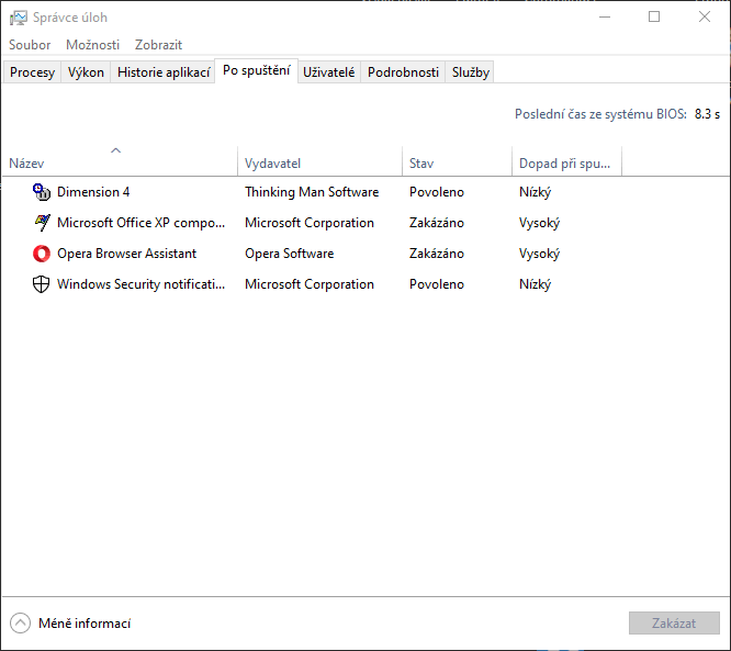 5. Uvádím aplikace, které se spouští po startu. Ověřuji si, zda