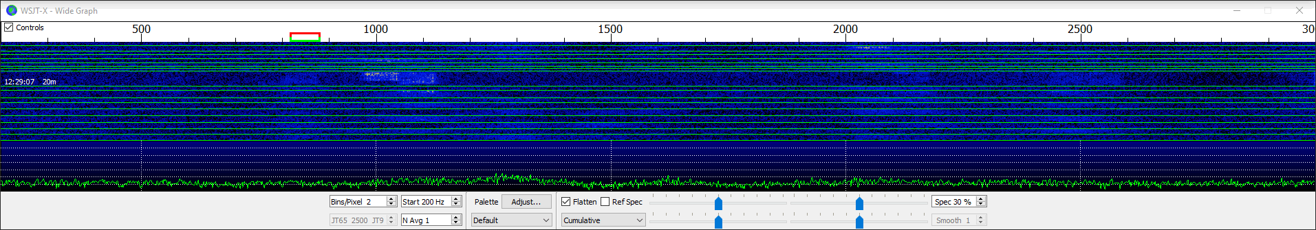 dobu nedekódují přijímané signály. Okno s vodopádem spektra vypadá