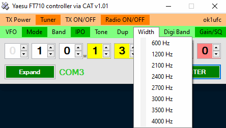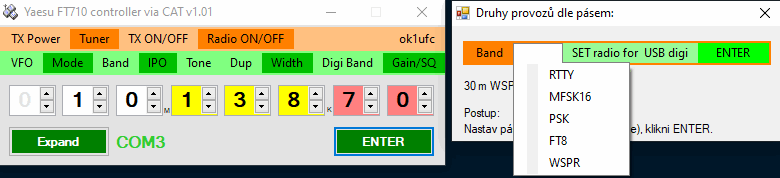 4. S časem jsem zjistil, že ovládání přes CAT je příjemné. Proto postupně přibývaly další parametry, které přes CAT nastavuji. Například pro zvolené pásmo a jeden vybraný digitální mód (RTTY, MFSK16, PSK, FT8, WSPR) si jedním kliknutím nastavím pracovní kmitočet a několik základních parametrů.