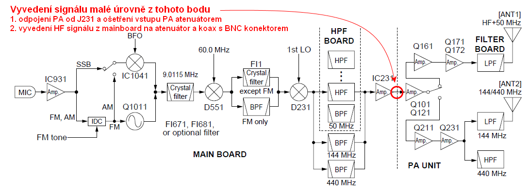 Ve schématu IC-706 jde o tyto body: