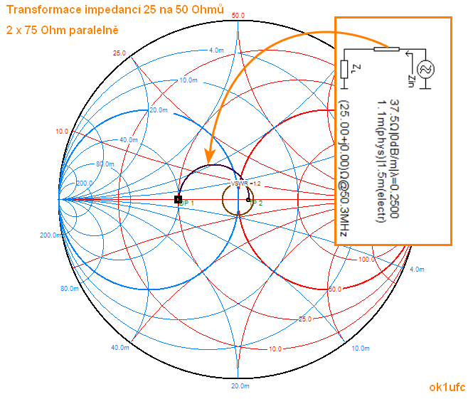 charakteristické impedanci 37.5 Ohmů.