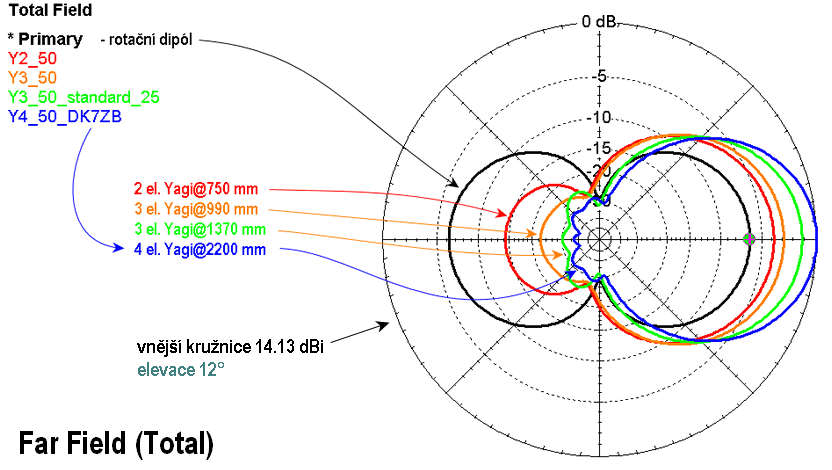 - stejný úhel elevace pro diagram total far field