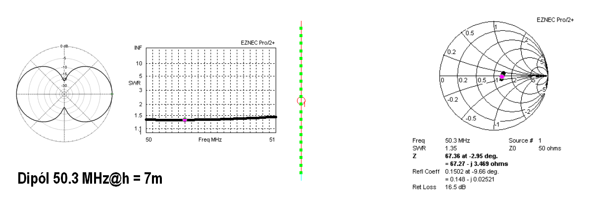h = 7 m. Můžete diagram porovnat s obr. 7 Vyzařovací diagram EZNEC