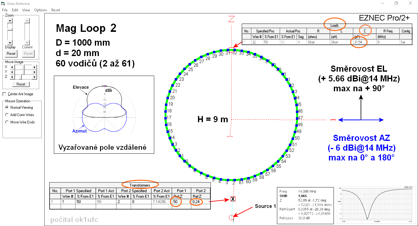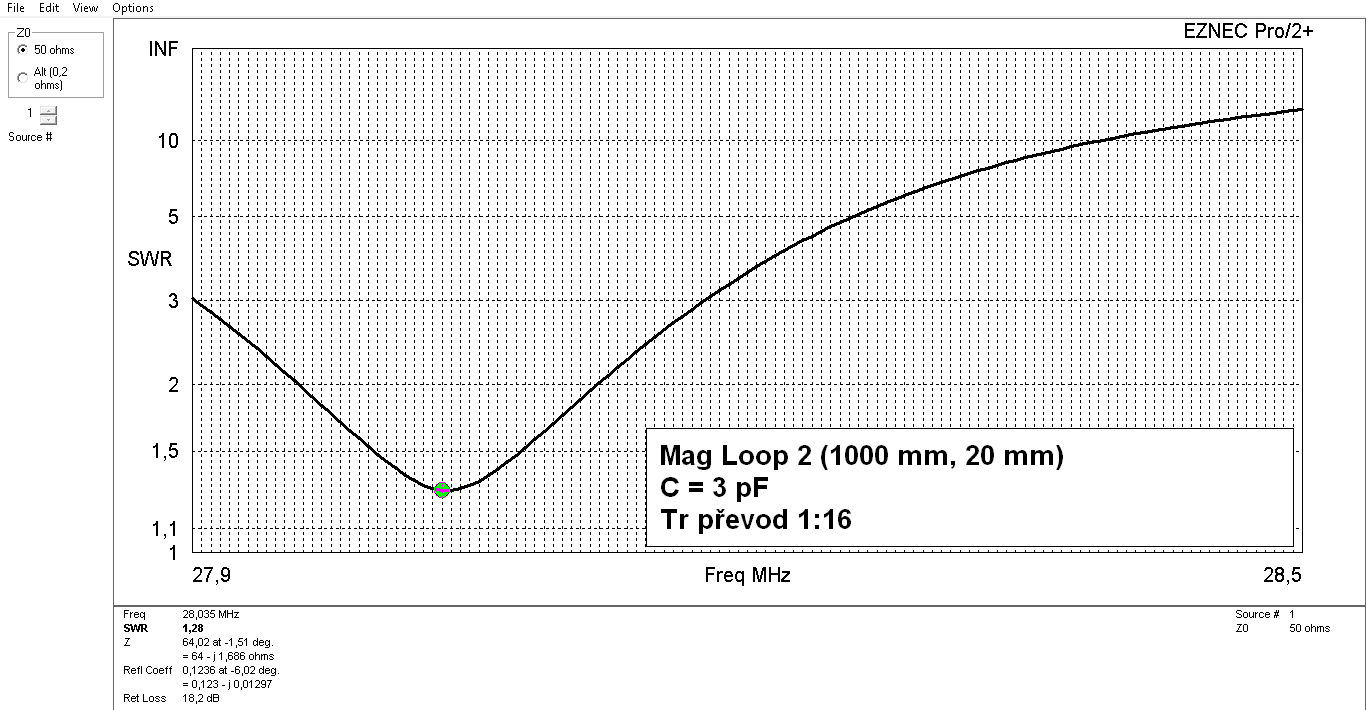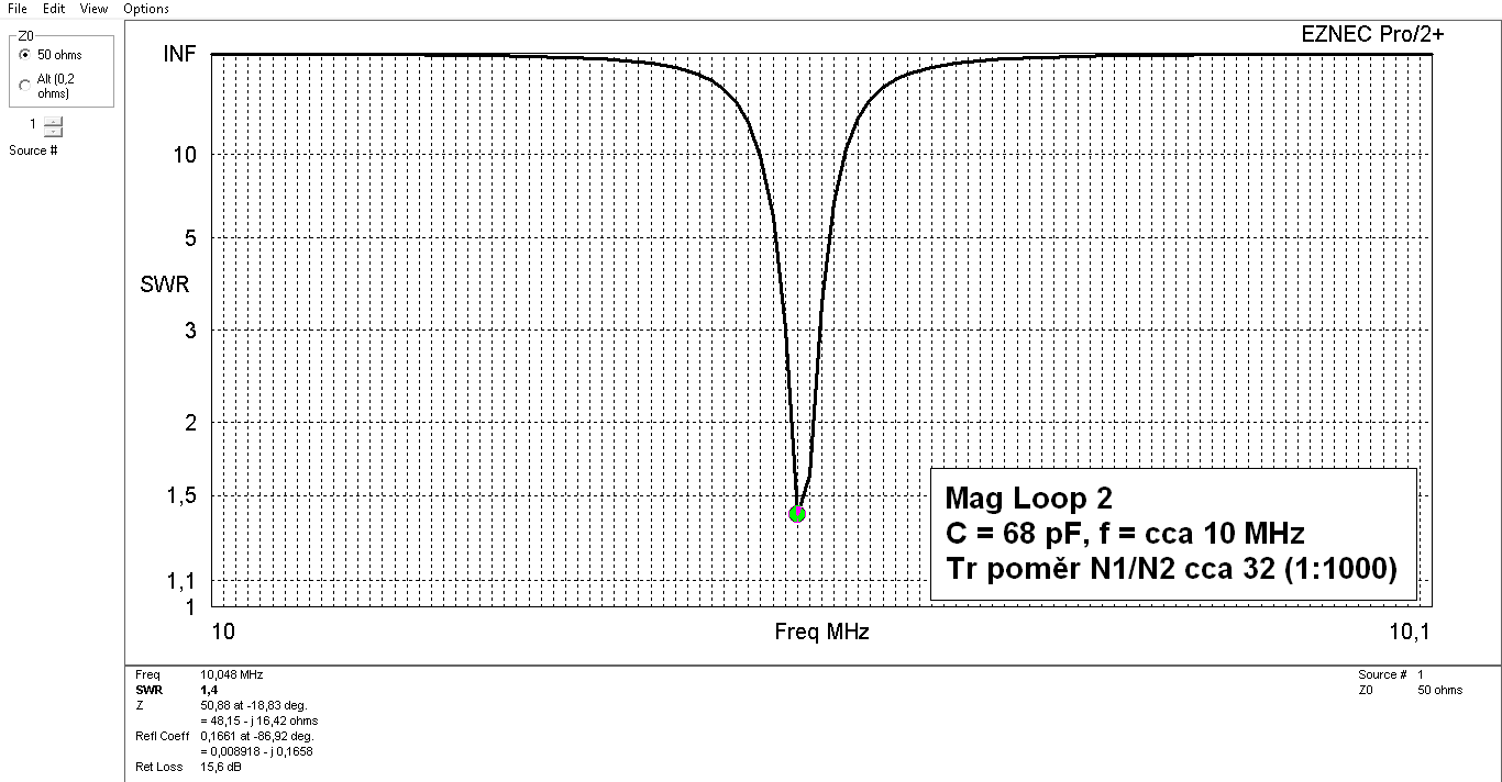 vygenerují potřebný tvar zářiče. Schéma Mag Loop 2 EZENEC je zde: