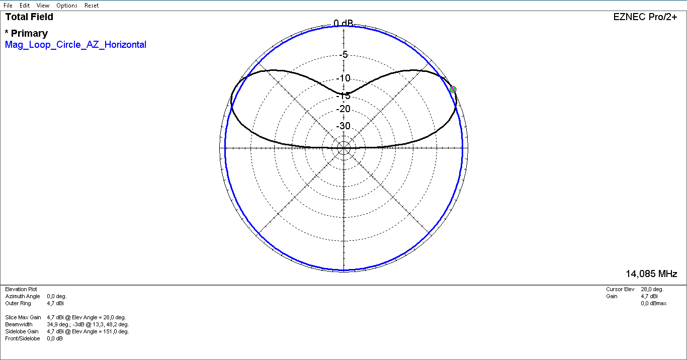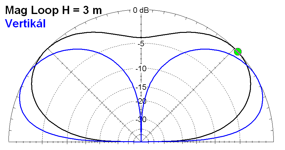 Mag Loop ve výškách instalace 0.5 lambda se stává anténou s vyzařováním a