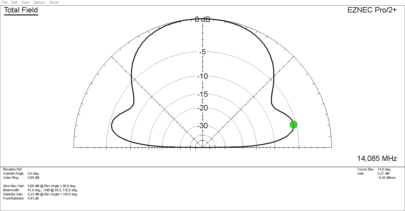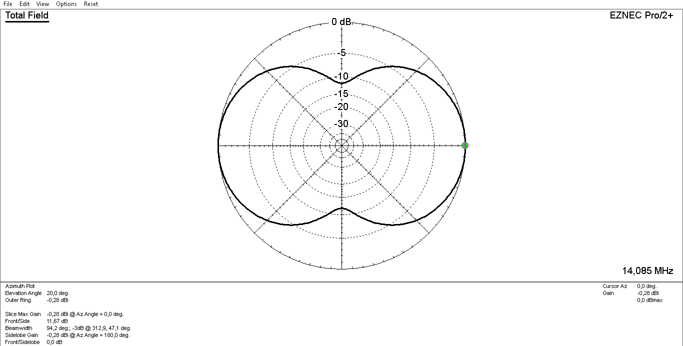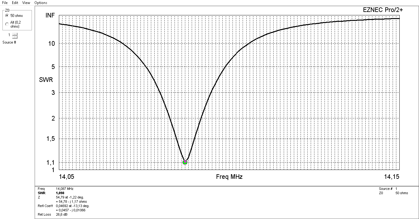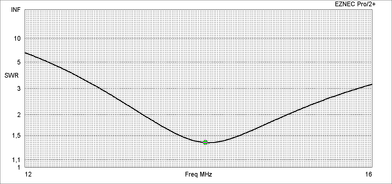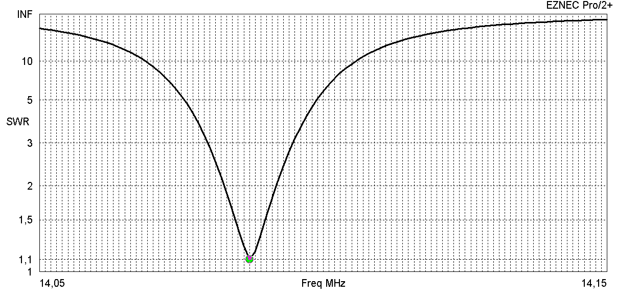 krátkých vln. V tomto příkladu je analyzována pomocí SW EZNEC měděná