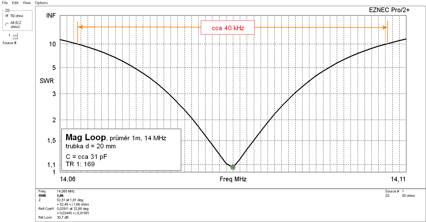 vidíme vlevo nahoře uzounkou charakteristiku Mag Loop, pro VSWR