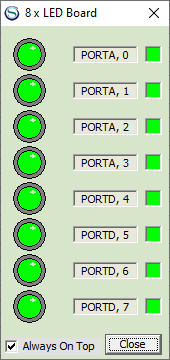bajtu poslal taky do portu D a rozsvítil jsem 4 piny RD4 až RD7.