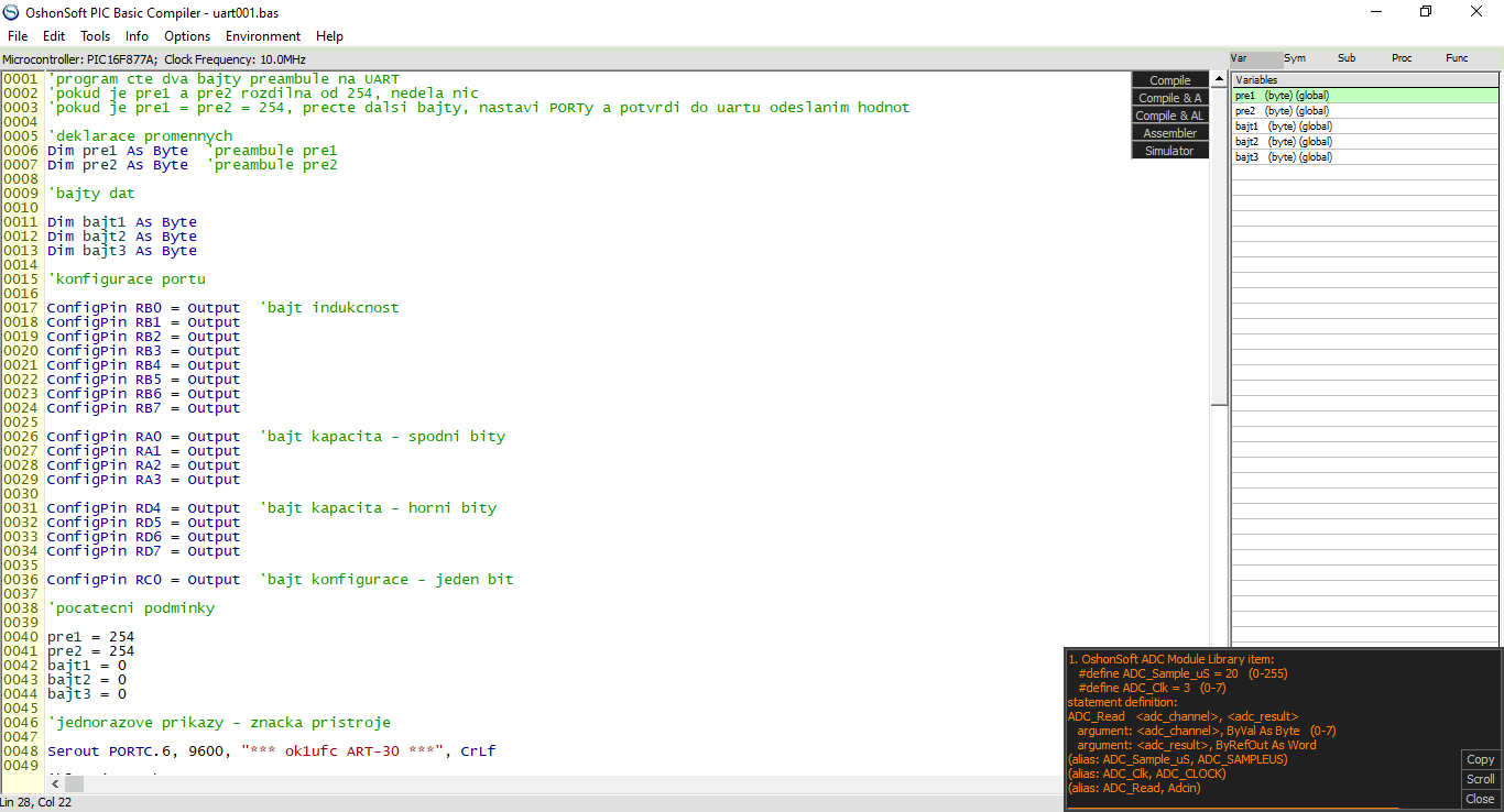 Použil jsem ho rovněž při ladění ukázkového programu a sice na