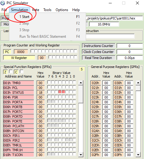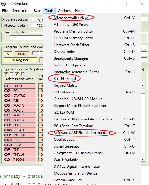 Simulátor, to je parádička. Náhledy do registrů procesoru považujme za