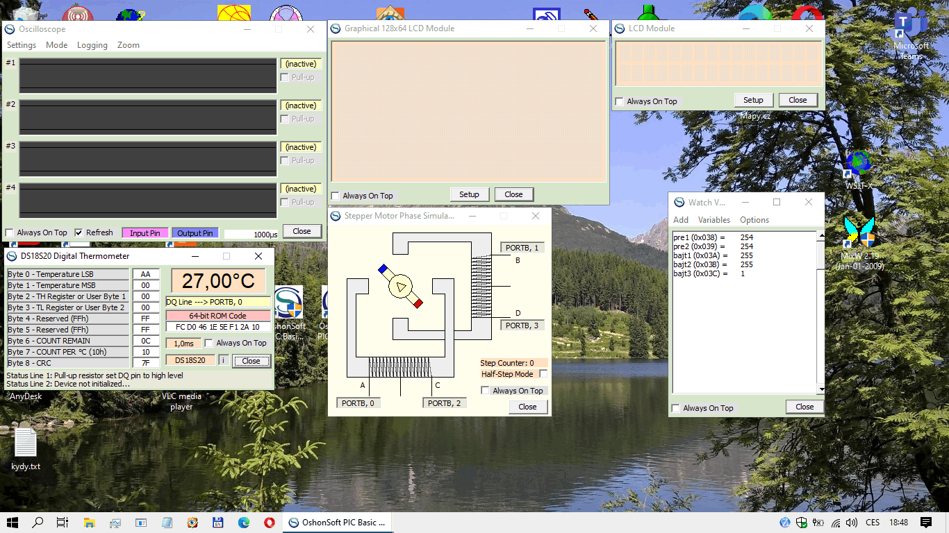 snímače teploty se sériovým výstupem, simulátor krokového motoru a