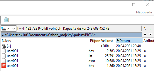 mikrokontroléru a dále soubory .asm a .lst. Takže v jednom
