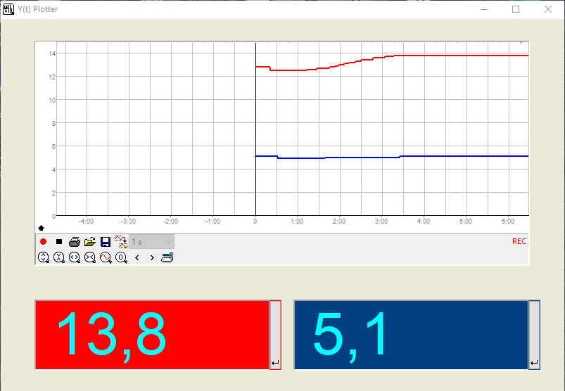 Aplikace pro Y(t) Plotter (záznamník veličin v závislosti na čase)