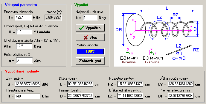 nechal provést výpočet pro 432.1 MHz. Vypočtené hodnoty vidíte ve spodní