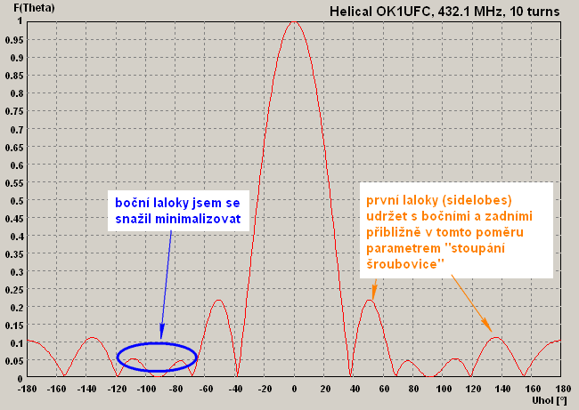 Vyzařování jsem nechal řešit s krokem 1°, obvod šroubovice