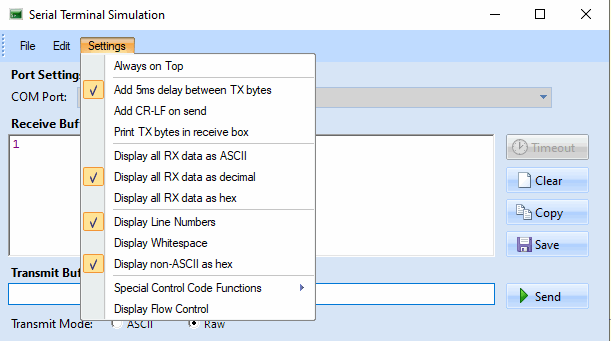 4. Tyto bajty budou odeslány jako data po sériovém portu zařízení